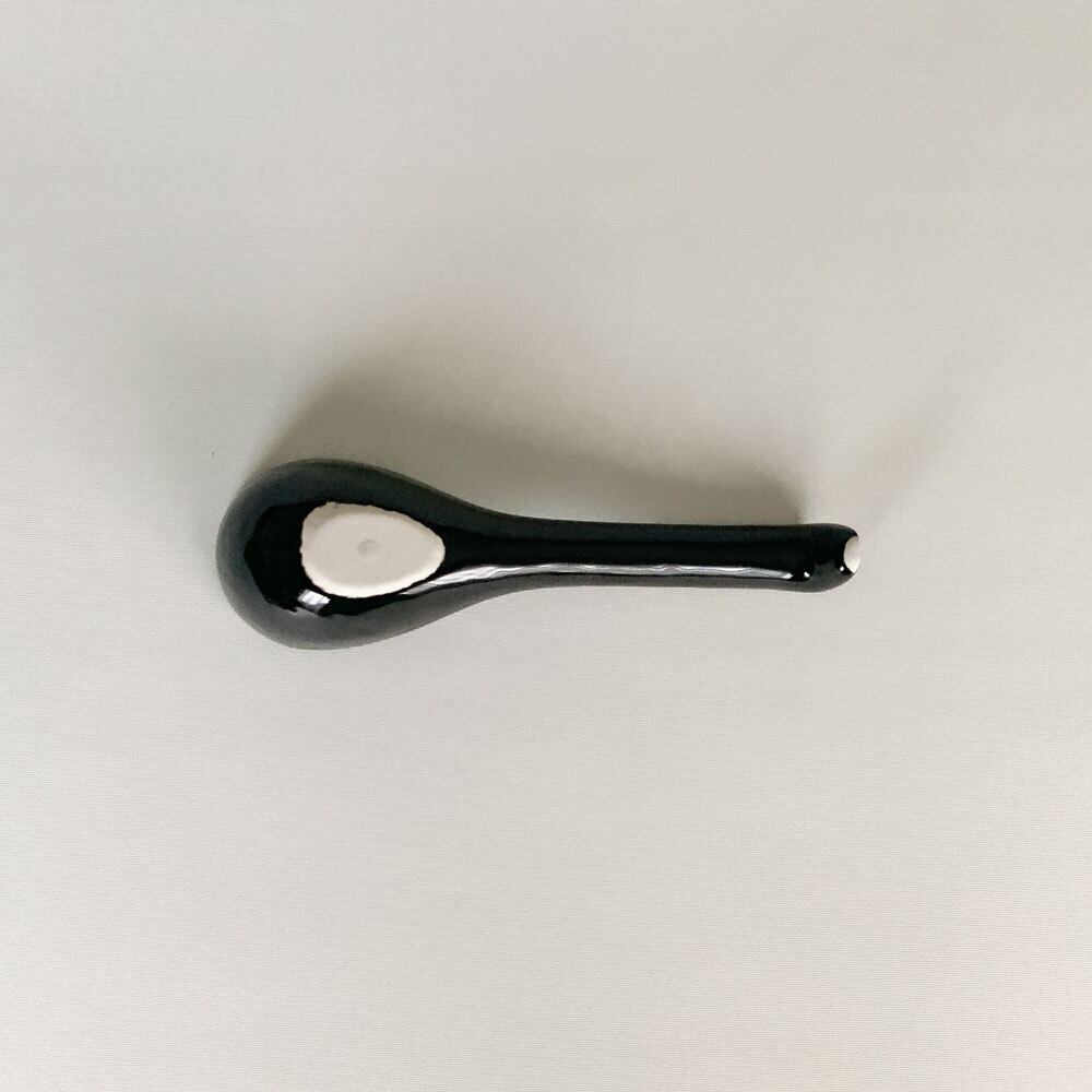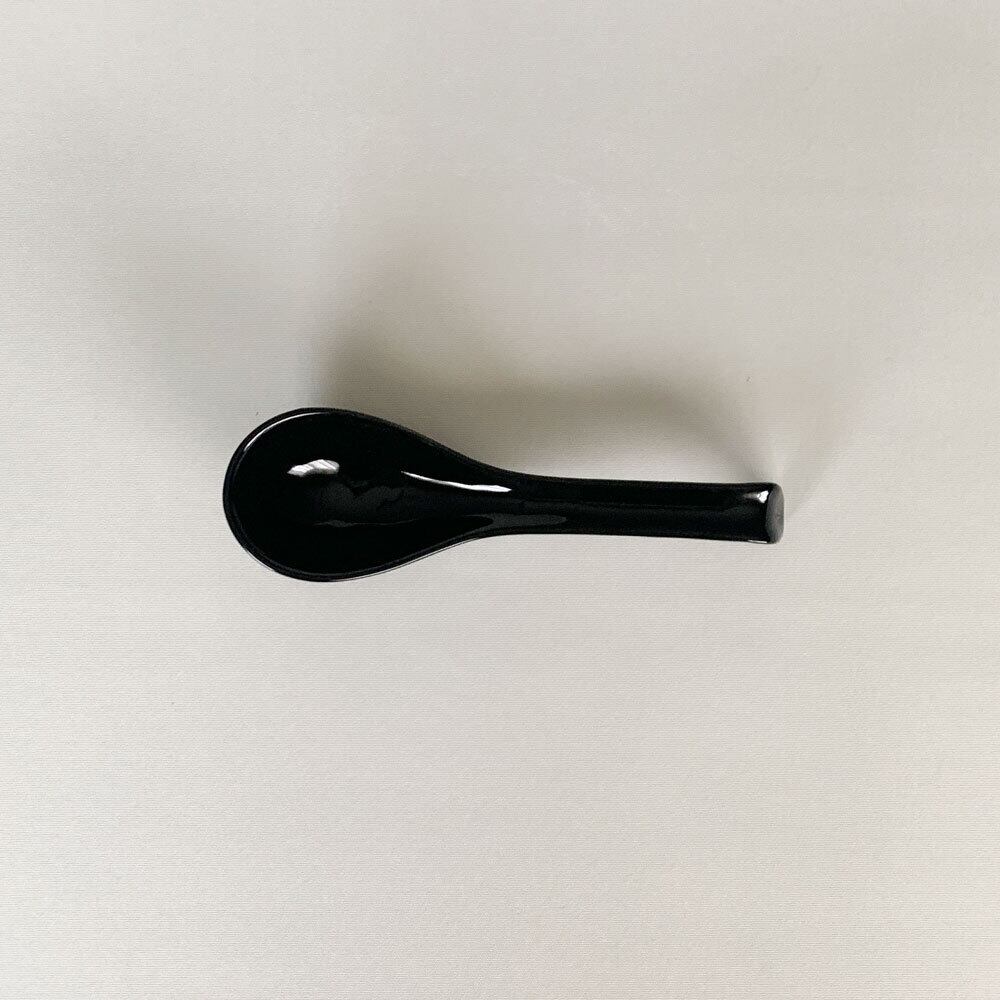れんげが落ちないように、食器のフチにひっかけられるように曲がっています。