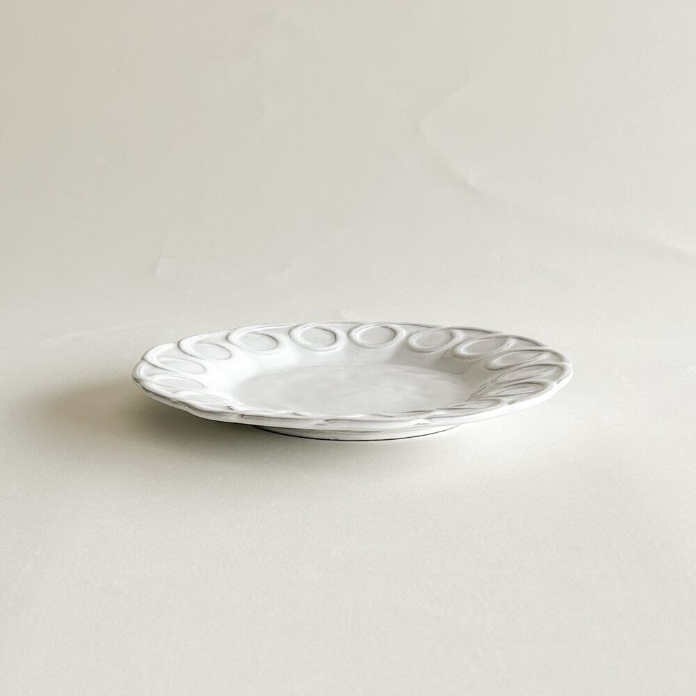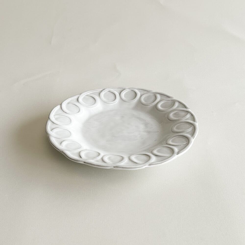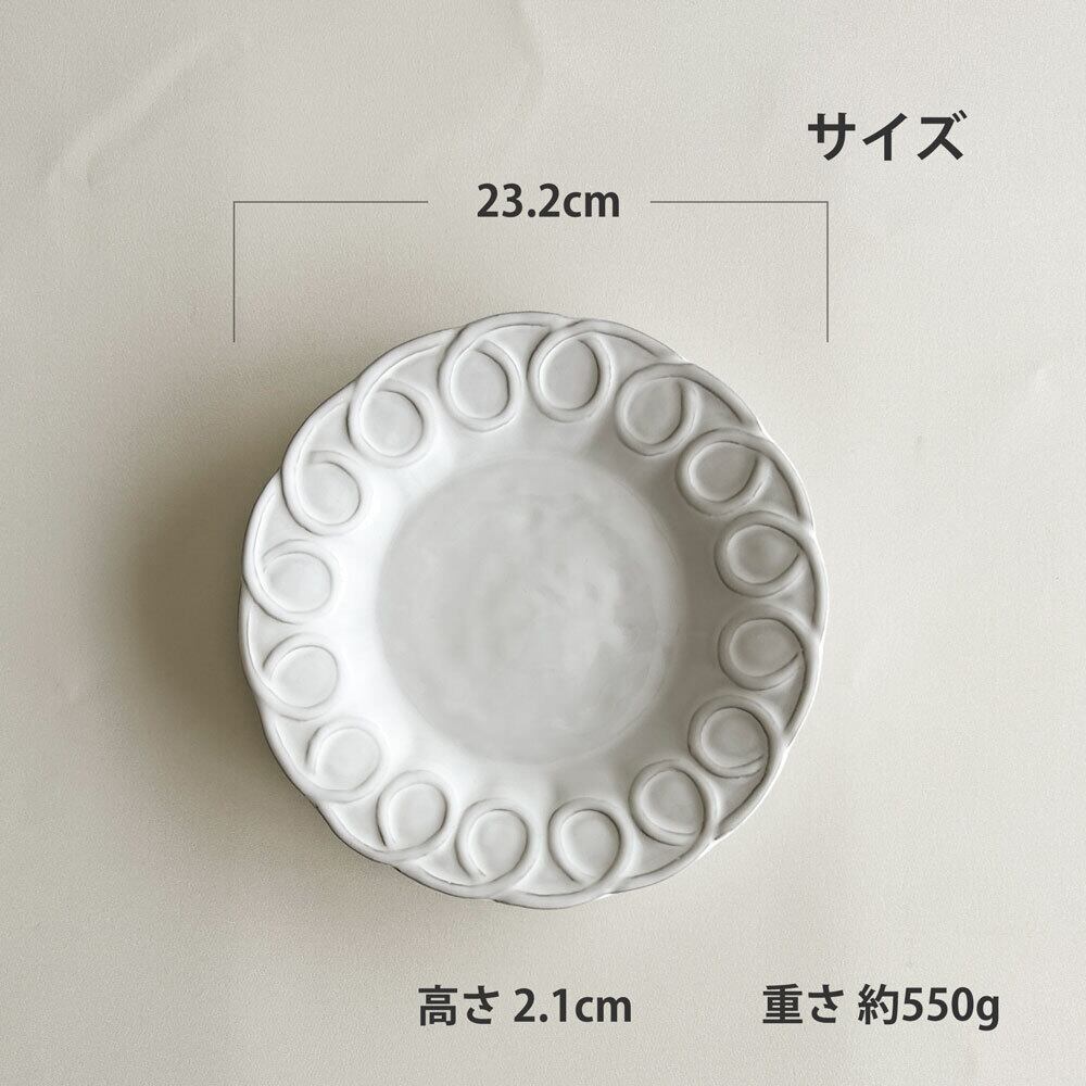 リムにうっすらと浮き上がる模様が魅力です。清楚で気品のある模様がテーブルコーデのポイントになります。