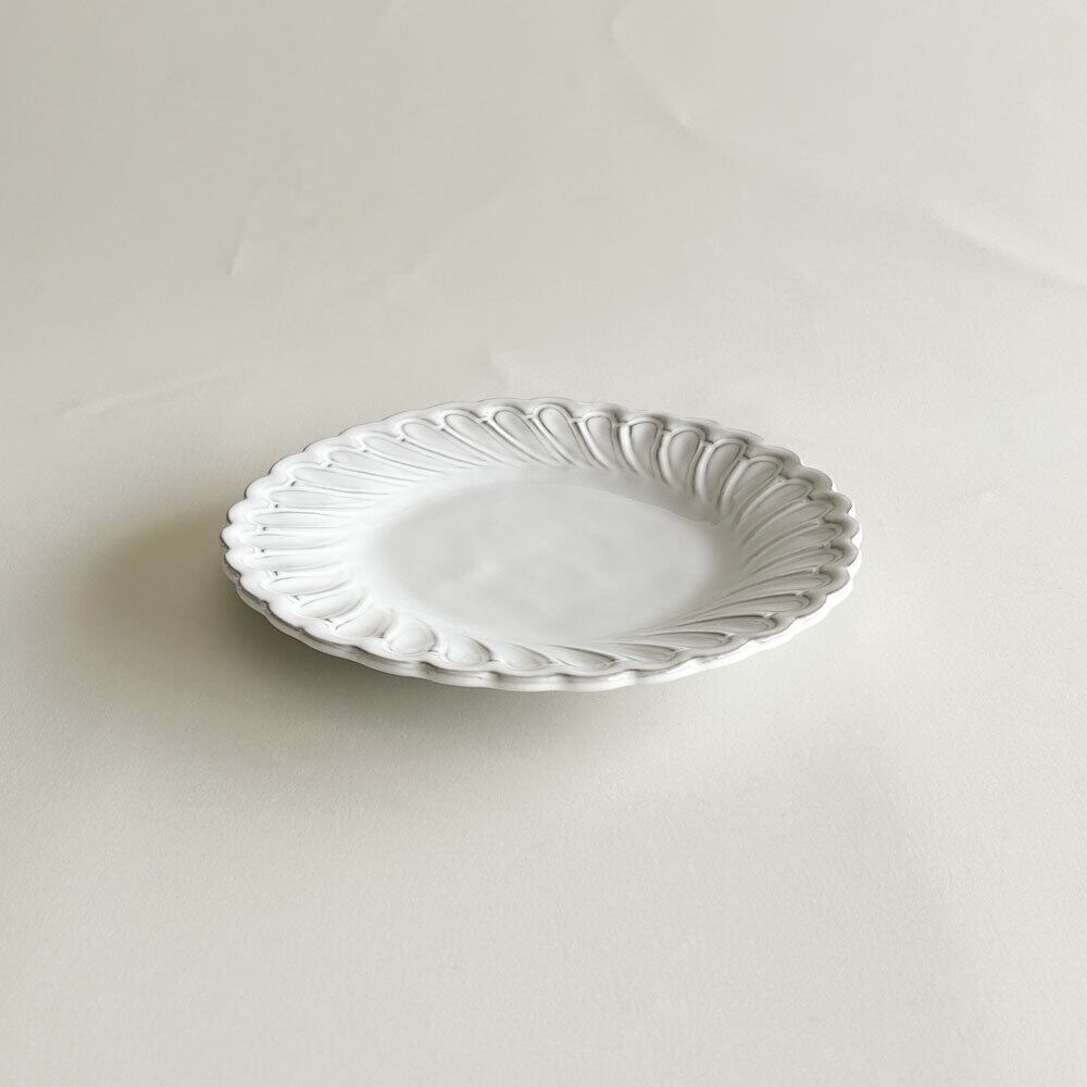 リムにうっすらと浮き上がる模様が魅力です。清楚で気品のある模様がテーブルコーデのポイントになります。