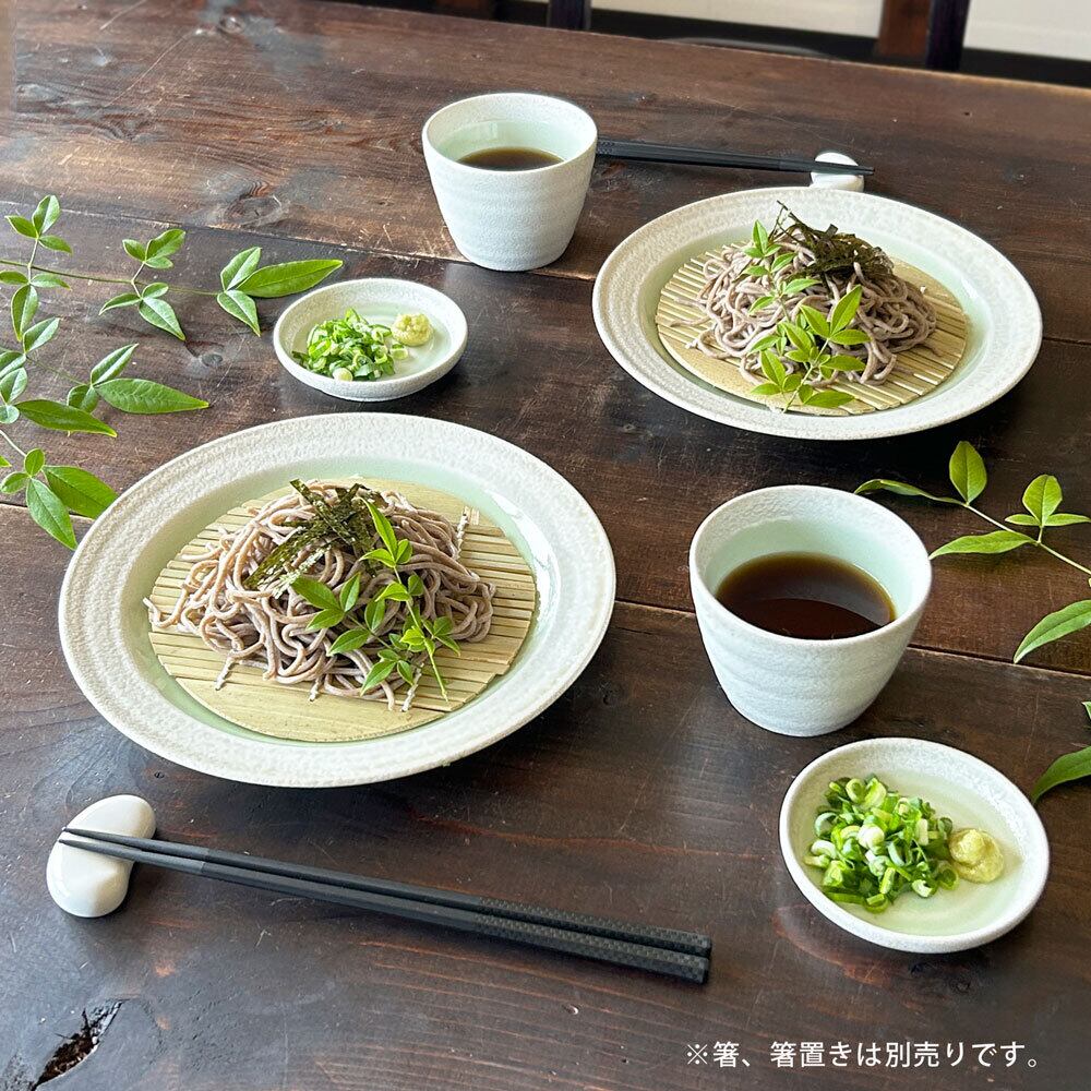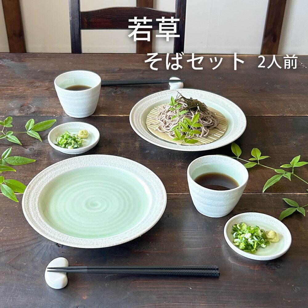 若草の柔らかな色合いが、自然の風合いを感じさせるデザインとなっており、二人前のそばを盛り付けるのに最適です。
