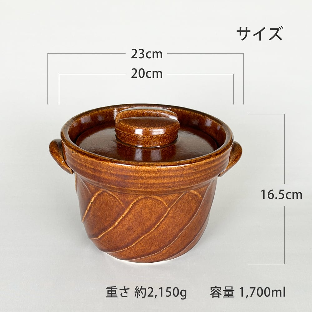 ねじれご飯釜 3合炊き 飴釉 1個