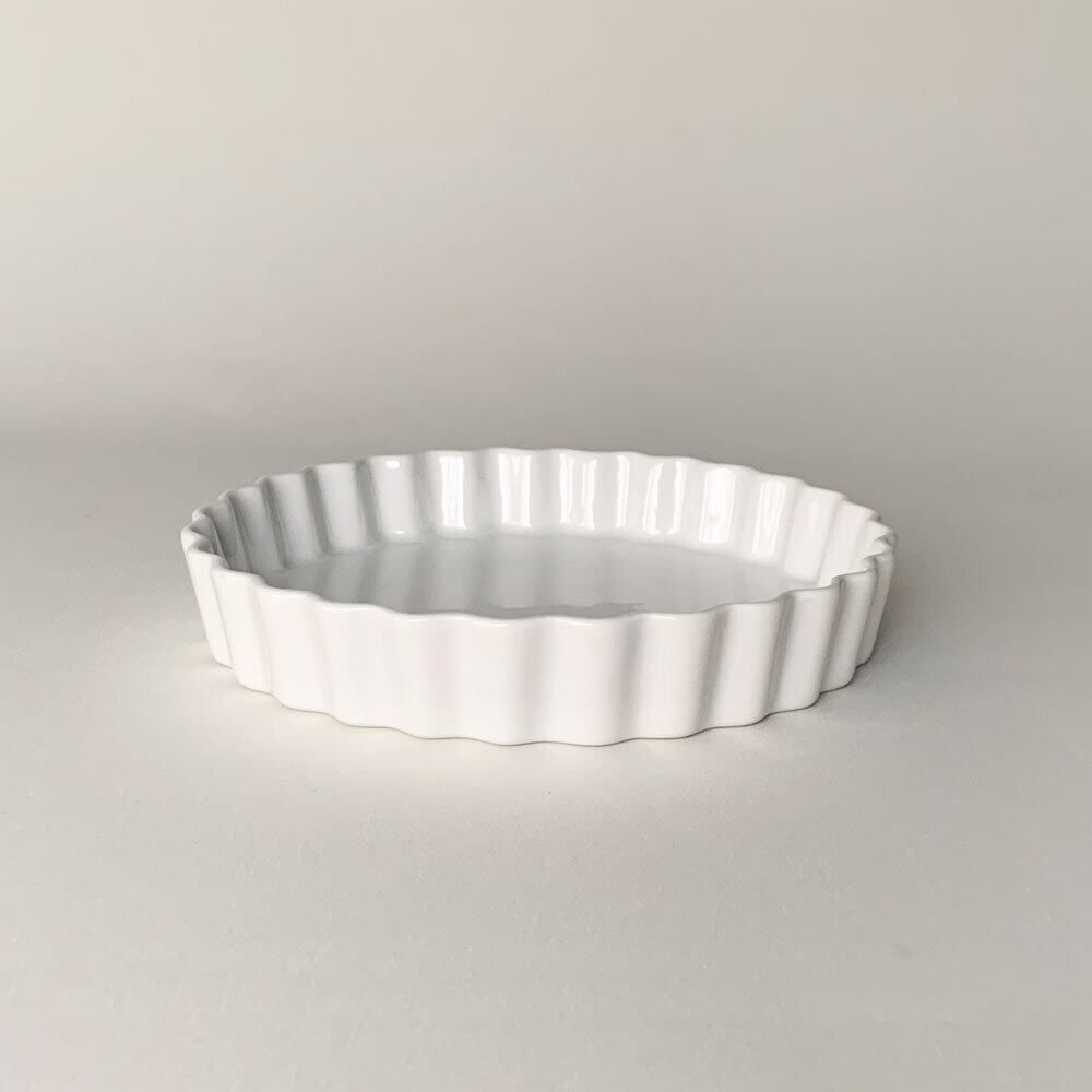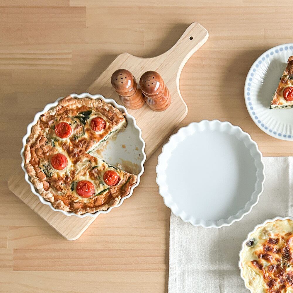 磁器製のパイ皿は焼き上がりの熱々の状態をそのままテーブルに出すことができ、冷めにくいのでおもてなしにもぴったりです。