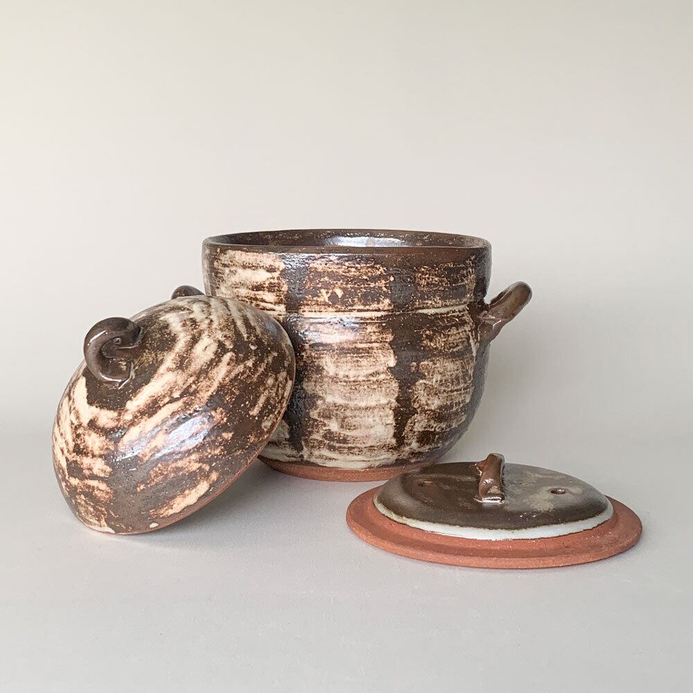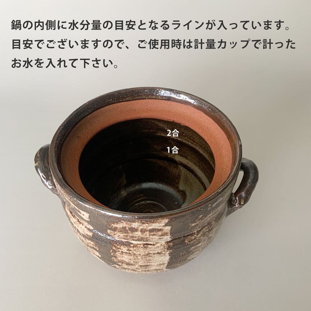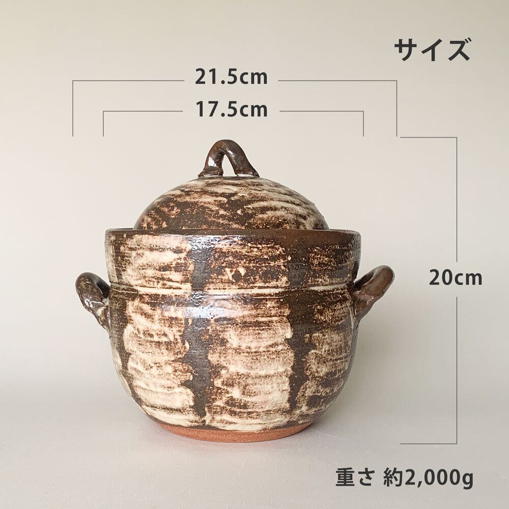 ぬくもりと風格を感じるご飯鍋。職人の手仕事による刷毛目模様が、ひとつひとつ異なる表情を見せ、食卓に豊かな風合いを添えます。