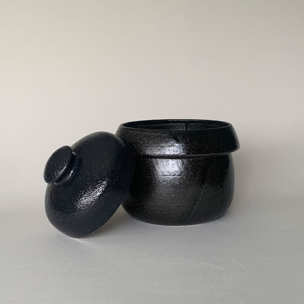 艶やかな黒釉が美しい、壺型のご飯鍋