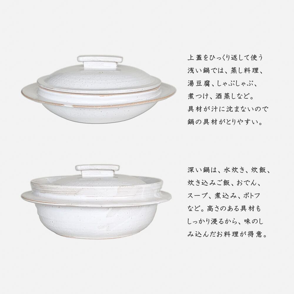 深い鍋と浅い鍋の二通りの使い方ができるおトクな土鍋です。