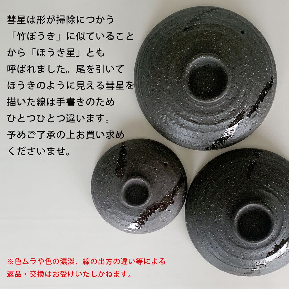 ブラックの石目模様に彗星が流れるデザインは、和洋どちらの食卓にもなじみます。