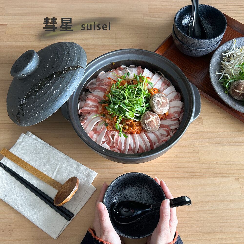 ブラックの石目模様に彗星が流れるデザインは、和洋どちらの食卓にもなじみます。