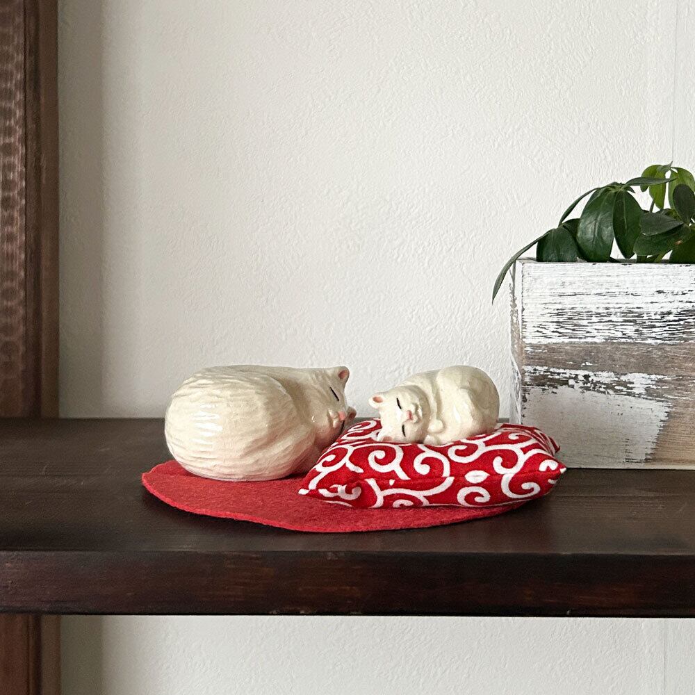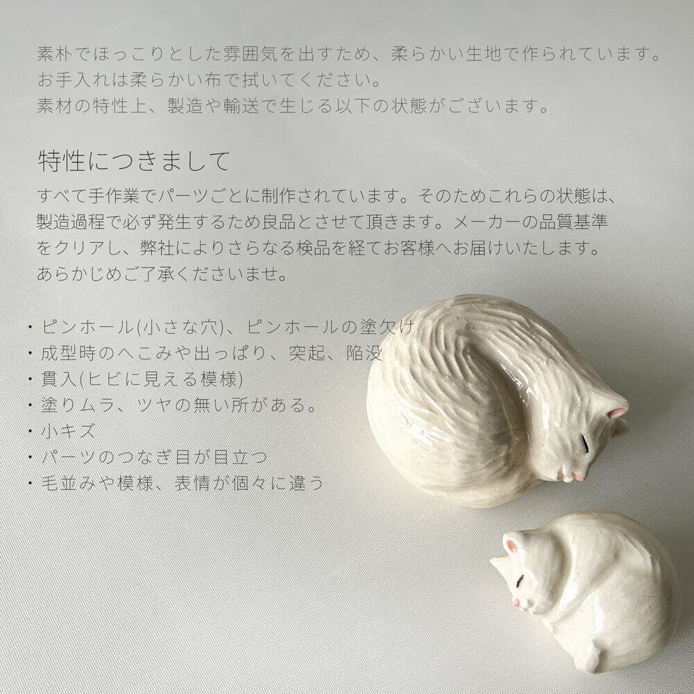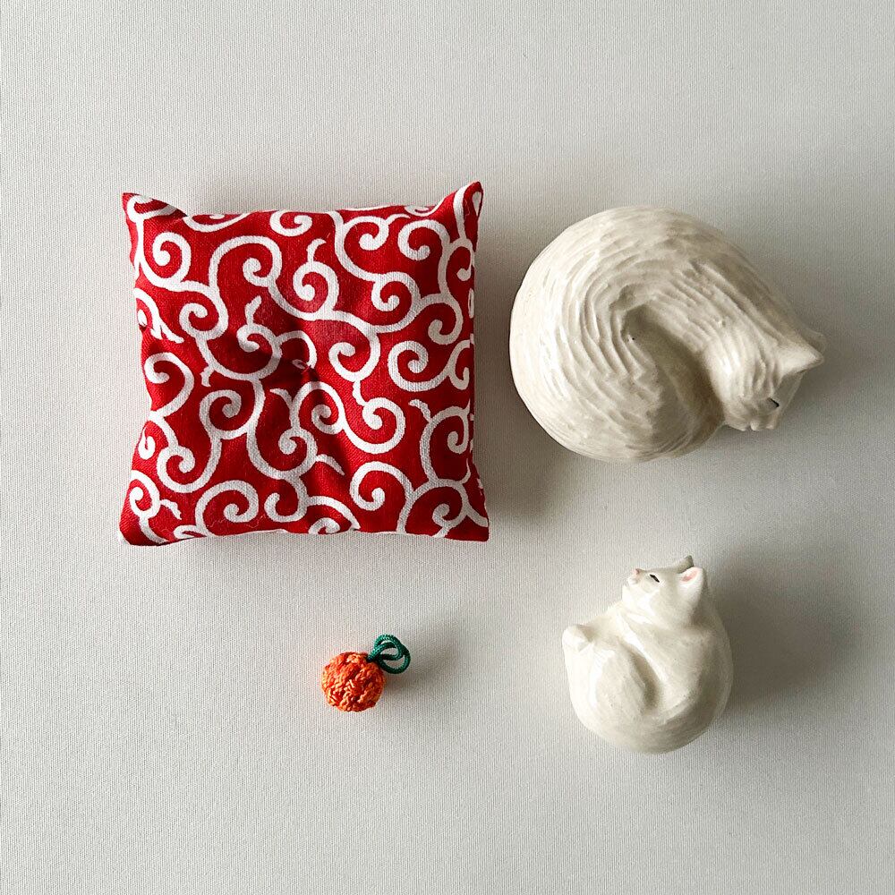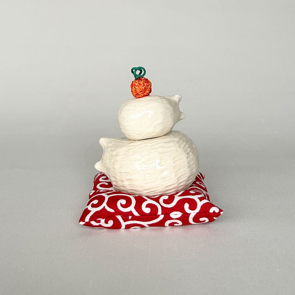 鏡餅のように飾ったり、しろねこの置物としてもかわいらしく、季節を問わず楽しめる作品です。