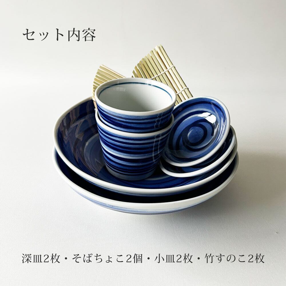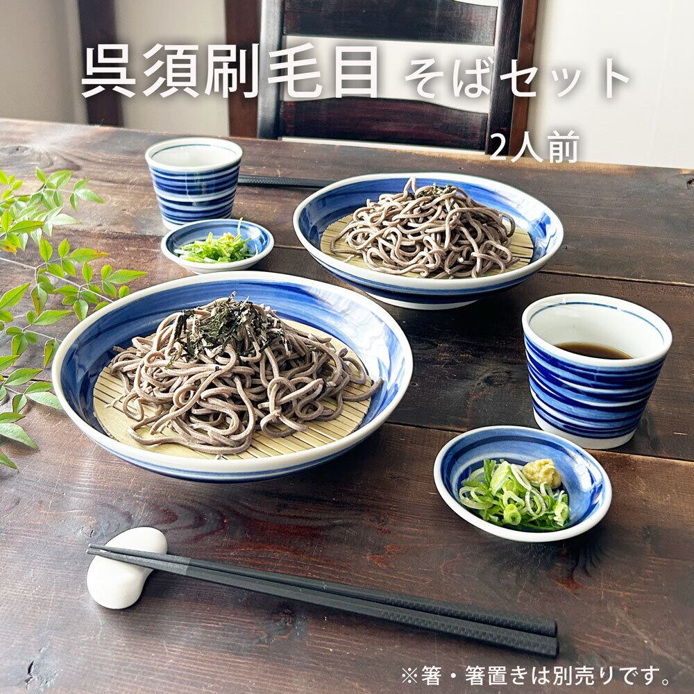 呉須刷毛目そば食器セット 2人前(箱なし)