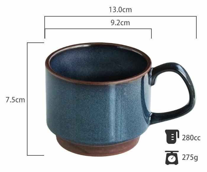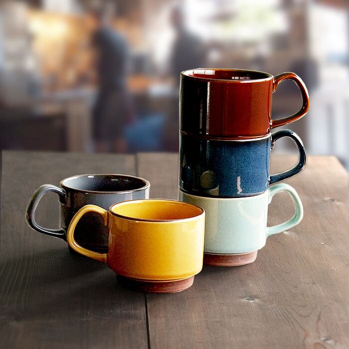 シンプルな形と、馴染みやすい色あいが素敵なおおぶりマグ。ハンドル部分を大きくして、角度をつけることにより、男性の手でも馴染んで、女性の手も安定感を実現しました。