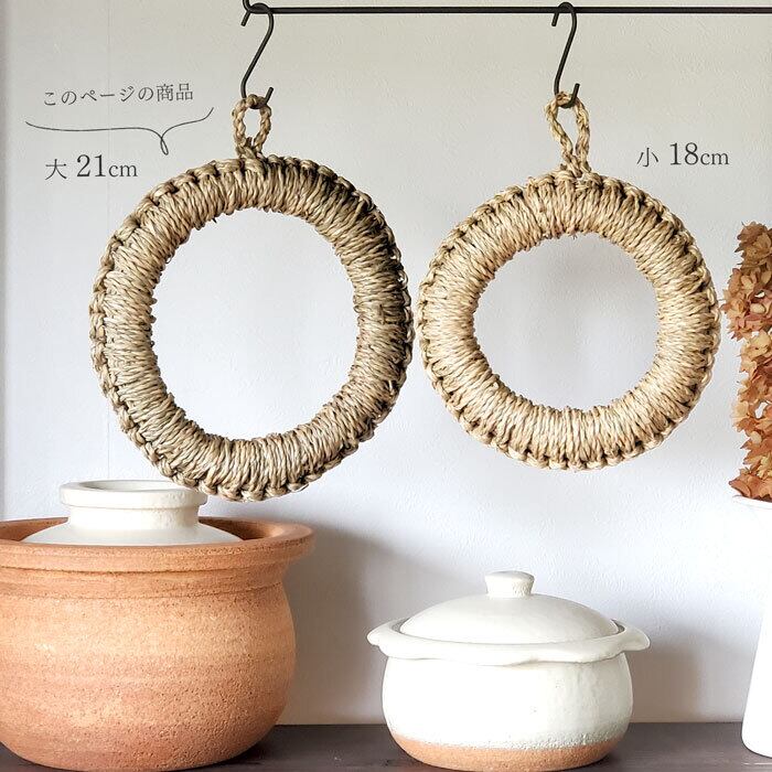 ひとつひとつベトナムの職人さんが丁寧に作られたい草鍋敷きは、丈夫なだけでなく輪っかがついているので収納にも便利です。