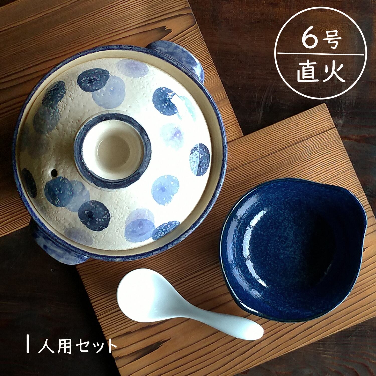 ・水玉柄がかわいい一人分にちょうどよい6号サイズの土鍋が1個