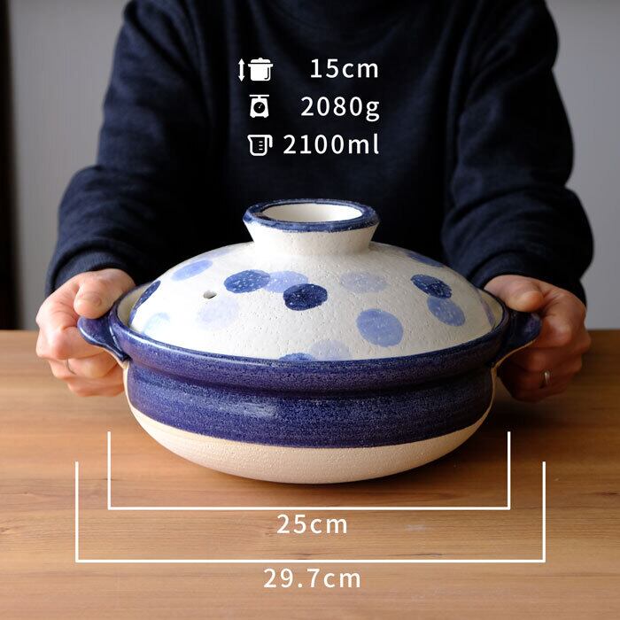 2人から3人用の大きさ。ふたり暮らしや小家族にちょうどよい土鍋です。