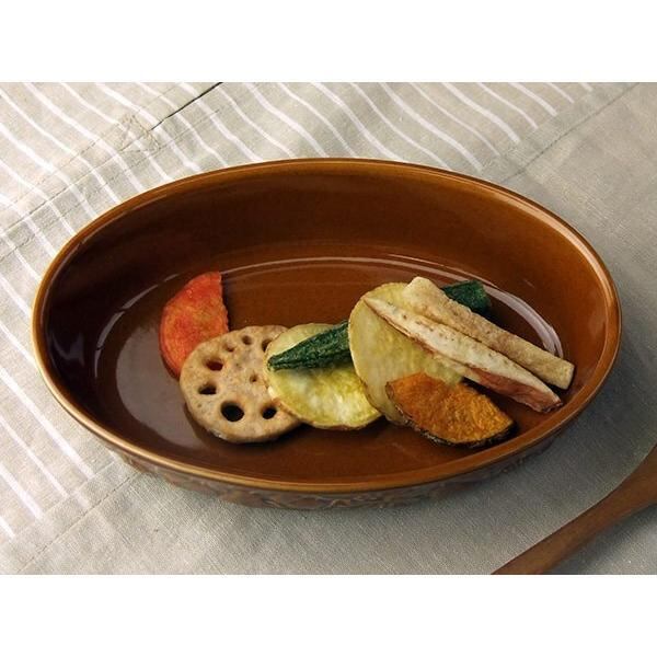 【内容】あめ色 レリーフ グラタン皿×1個