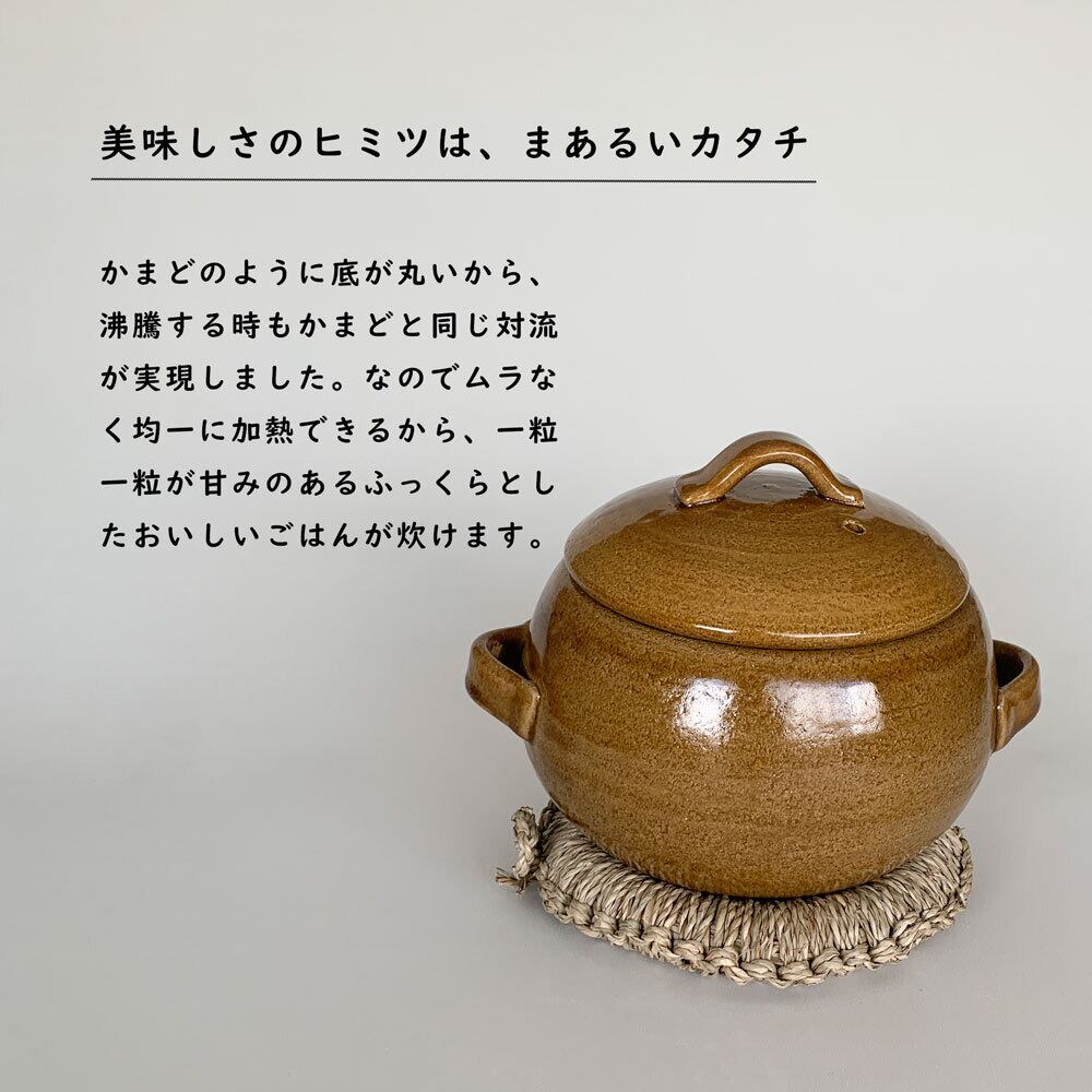 ころんとした丸い形が愛らしい、ご飯をおいしく炊くためのこだわりが詰まったと土鍋です。