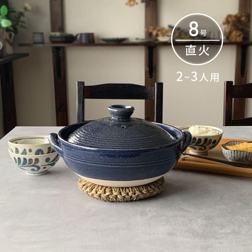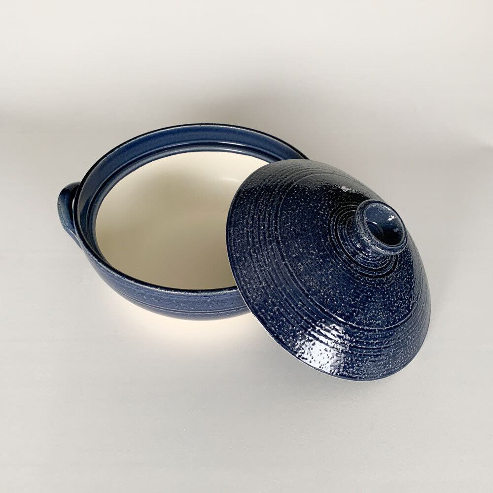 藍釉こま筋8号 炊きじょうず土鍋