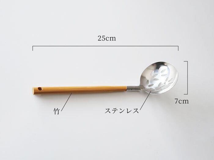 テーブルの上で使う時に便利な、小さめの穴あきおたま。