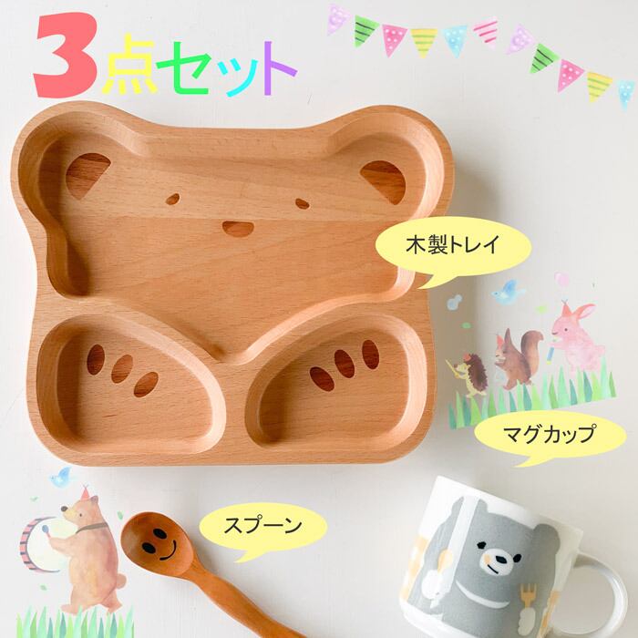 木製キッズトレイ くま 3点セット(箱付き)