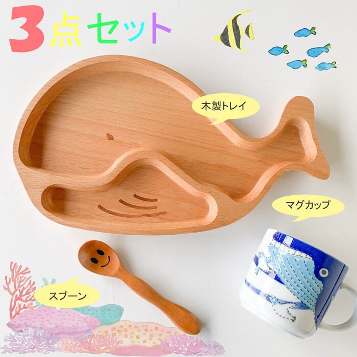 木製キッズトレイ くじら 3点セット(箱付き)
